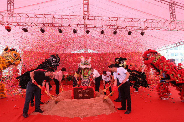 鑼鼓喧天,龍騰獅躍,振奮人心的舞獅表演將奠基儀式的氣氛推向高潮。全體領導移步奠基區(qū),共同為百晟上府奠基培土,寓意項目正式開工。禮炮齊鳴,禮花繽紛,伴隨著全場嘉賓的熱烈掌聲,百晟上府項目奠基儀式取得圓滿成功。